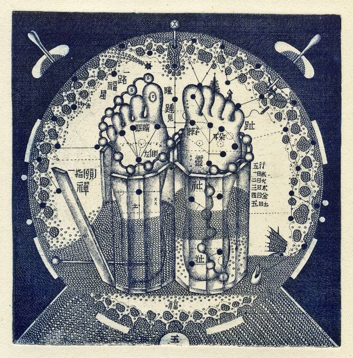 О. Аксінін. [Стопи Будди]. EXL Бориса Лєвих. Лист 1 цикла “Будда”. 1984 р.
