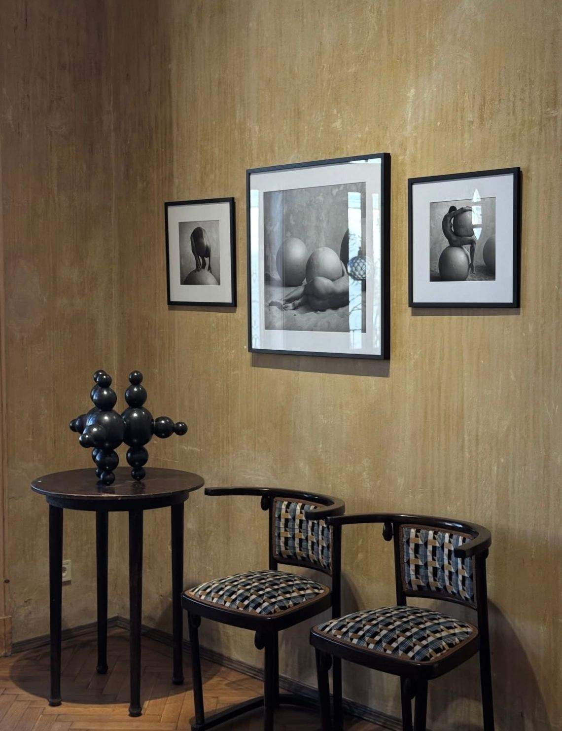 Це чистий концептуалізм. Тут не варто шукати «красиву картинку» для фолу (хоча візуально все дуже естетично й мінімалістично). Роботи існують лише у зв’язці з простором. Гудімов дуже круто обіграв цей момент – форми інтегровані в галерейний побут так природно, ніби вони там були завжди. Десь куля здається частиною меблів, десь – моделлю планети, а десь – просто застиглою паузою в повітрі.