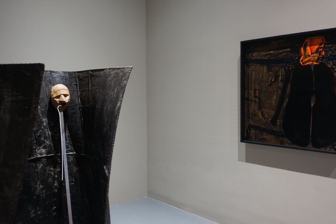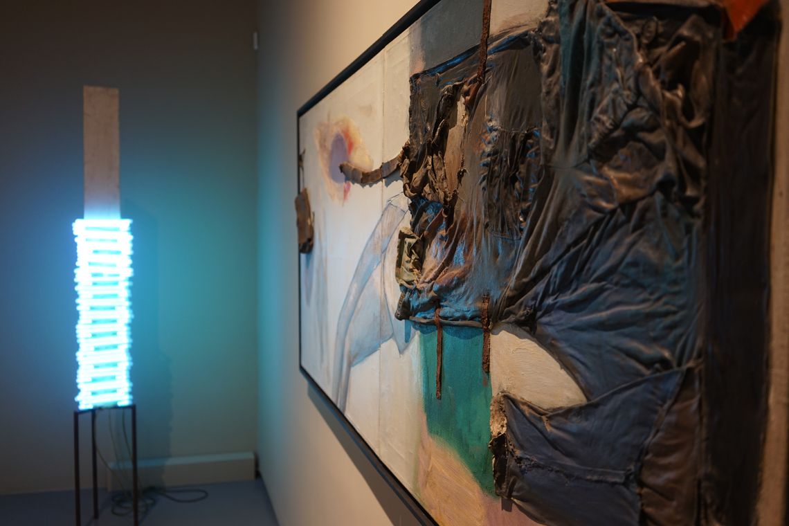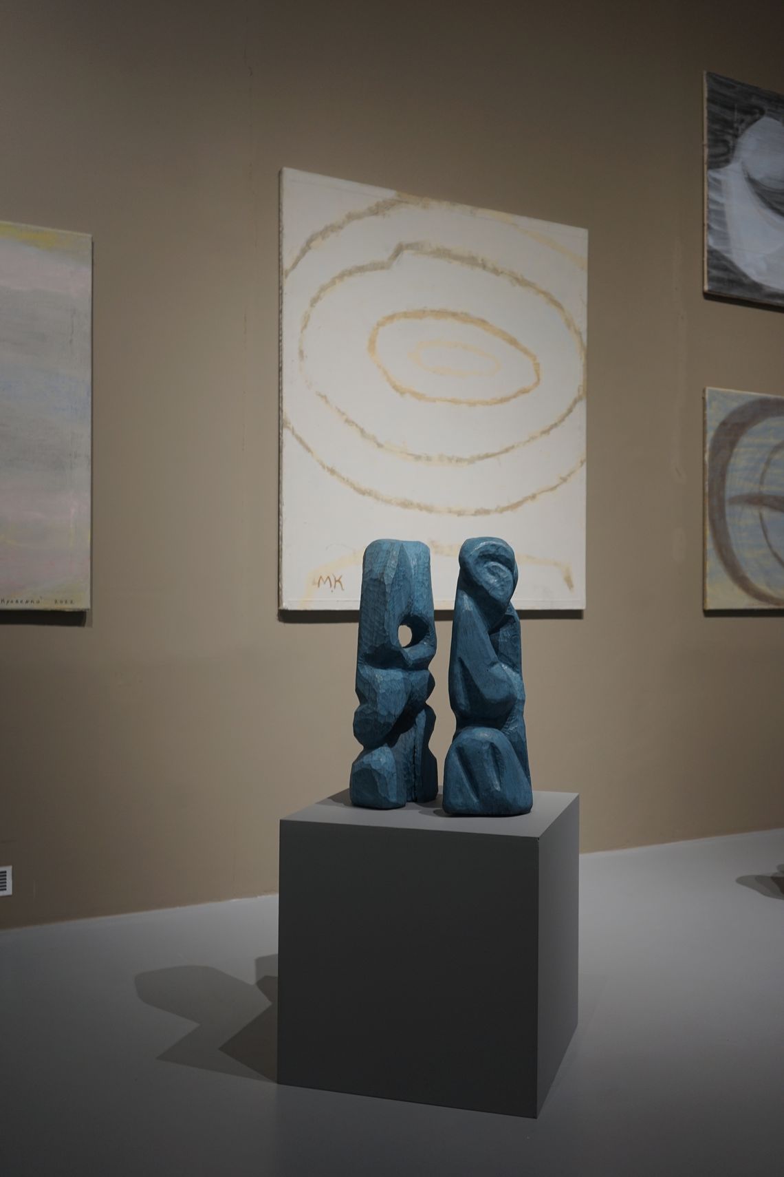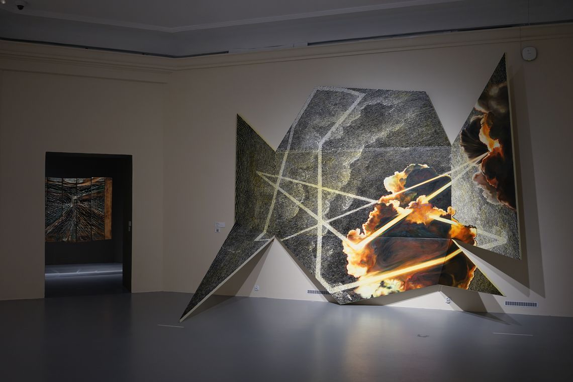 «Вибухова хвиля жовтої кімнати» Олега Голосія – один з хітів української нео-експрессіоністської «нової хвилі» кінця 1980-х – початку 1990-х. Художник демонструє візіонерське видіння «денного», розкресленого ренесансною плиткою простору, символізуючого нашу раціональну іпостась, в який крадькома прокрадаються загрозливі силуети нічних тіней. Такі видіння неминучі в часи «подвійного апокаліпсису», коли справжній кінець світу передвіщає кінець раціональних наративів. Але цей іграшковий, приручений апокаліпсис теж несправжній – сцена є як загрозливою, так і по-дитячому наївною, з якимсь відьомським капелюхом, який зачаївся на підлозі – єдине, що залишилось після вибуху серйозного мистецтва. Проєкція в матеріальний світ іншої, нематеріальної площини існування через антиформу – напрям пошуків Назара Білика, рельєф якого «Портрет з іншою площиною» заворожує можливістю погляду у містичні води Стіксу потойбіччя. Форма, парадоксально виліплена пустотою, примушує замислитись над крихким і одночасно міцним зв’язком між тілом і духом, предметом і образом, буттям і небуттям – одне виявляє інше, одне неможливе без іншого.