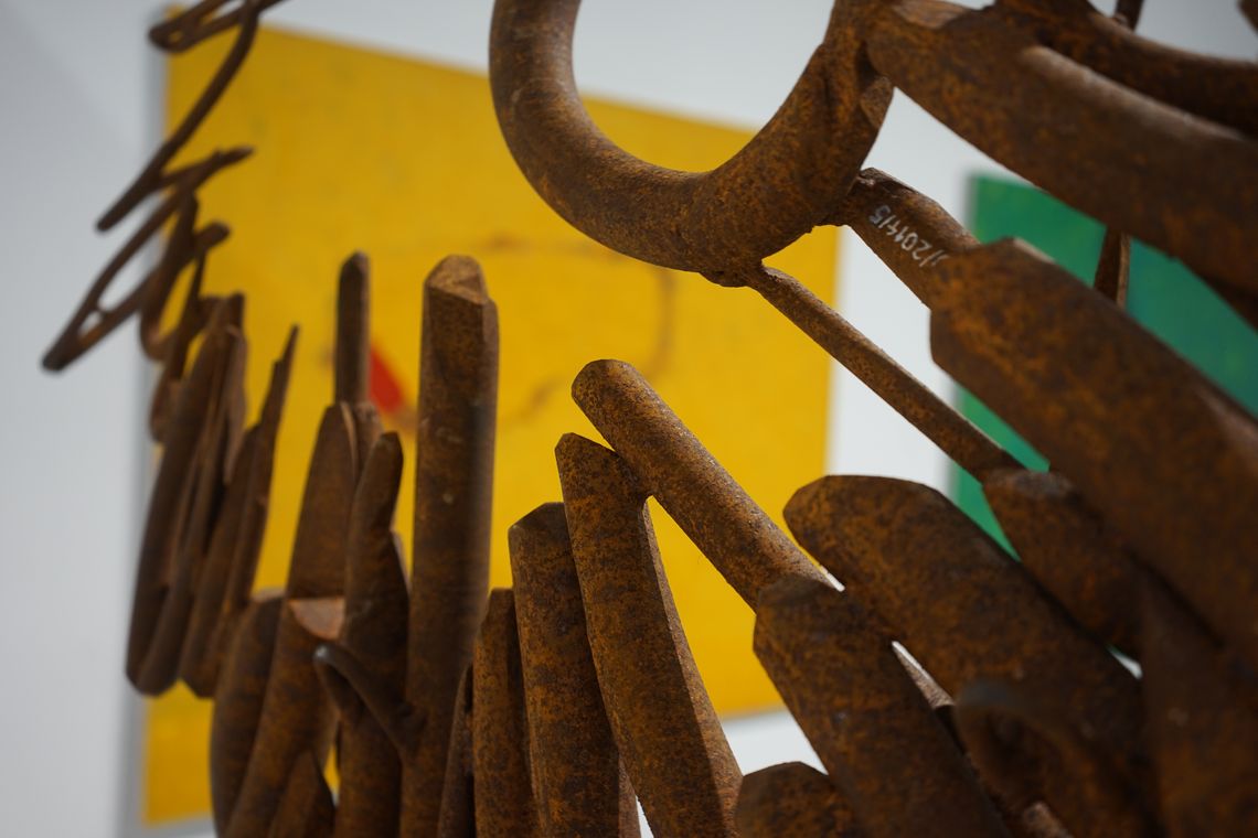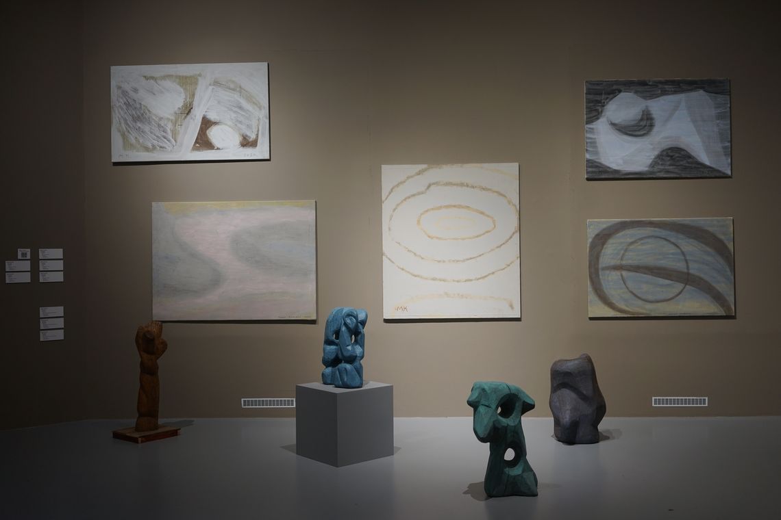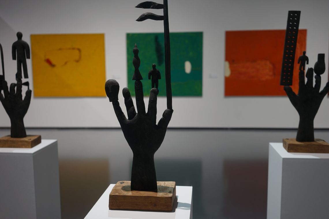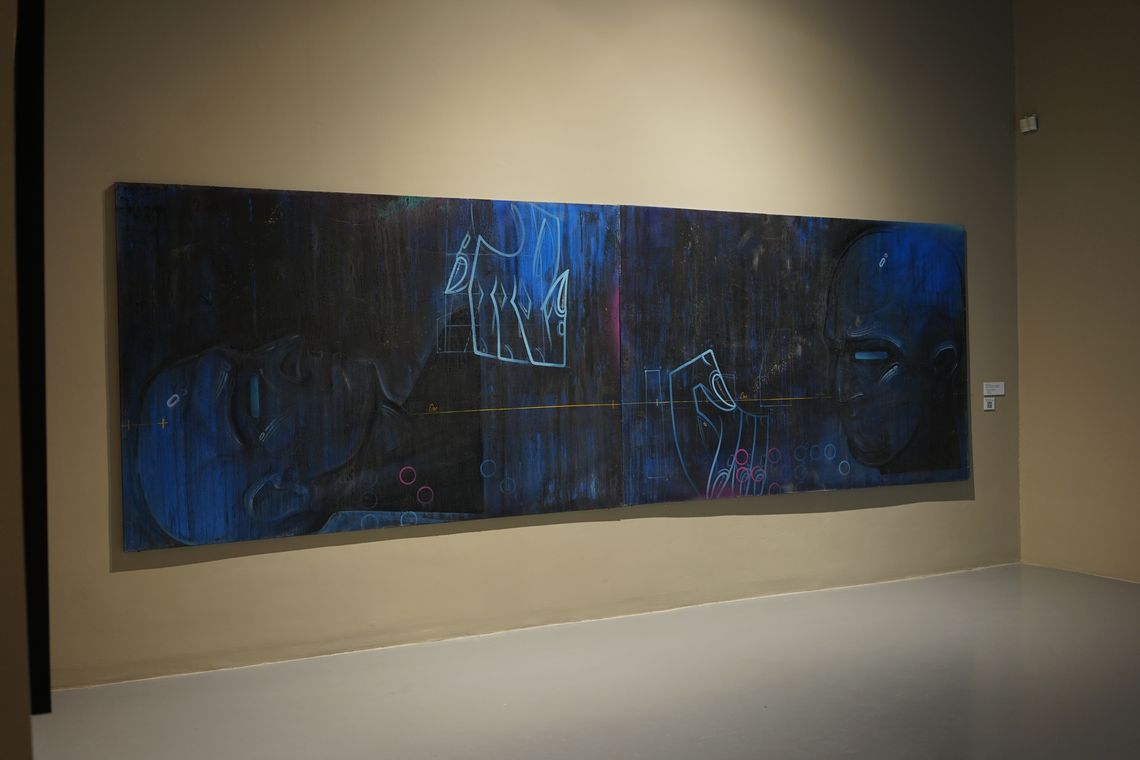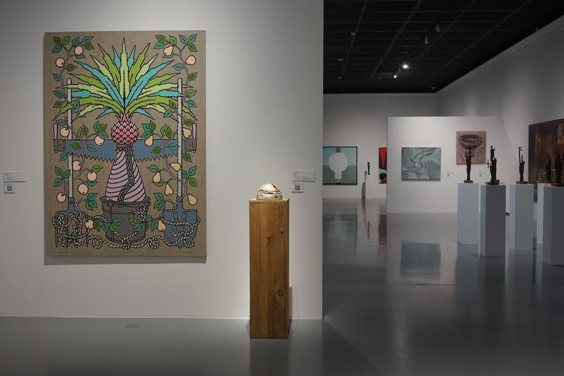 «Вибухова хвиля жовтої кімнати» Олега Голосія – один з хітів української нео-експрессіоністської «нової хвилі» кінця 1980-х – початку 1990-х. Художник демонструє візіонерське видіння «денного», розкресленого ренесансною плиткою простору, символізуючого нашу раціональну іпостась, в який крадькома прокрадаються загрозливі силуети нічних тіней. Такі видіння неминучі в часи «подвійного апокаліпсису», коли справжній кінець світу передвіщає кінець раціональних наративів. Але цей іграшковий, приручений апокаліпсис теж несправжній – сцена є як загрозливою, так і по-дитячому наївною, з якимсь відьомським капелюхом, який зачаївся на підлозі – єдине, що залишилось після вибуху серйозного мистецтва. Проєкція в матеріальний світ іншої, нематеріальної площини існування через антиформу – напрям пошуків Назара Білика, рельєф якого «Портрет з іншою площиною» заворожує можливістю погляду у містичні води Стіксу потойбіччя. Форма, парадоксально виліплена пустотою, примушує замислитись над крихким і одночасно міцним зв’язком між тілом і духом, предметом і образом, буттям і небуттям – одне виявляє інше, одне неможливе без іншого.