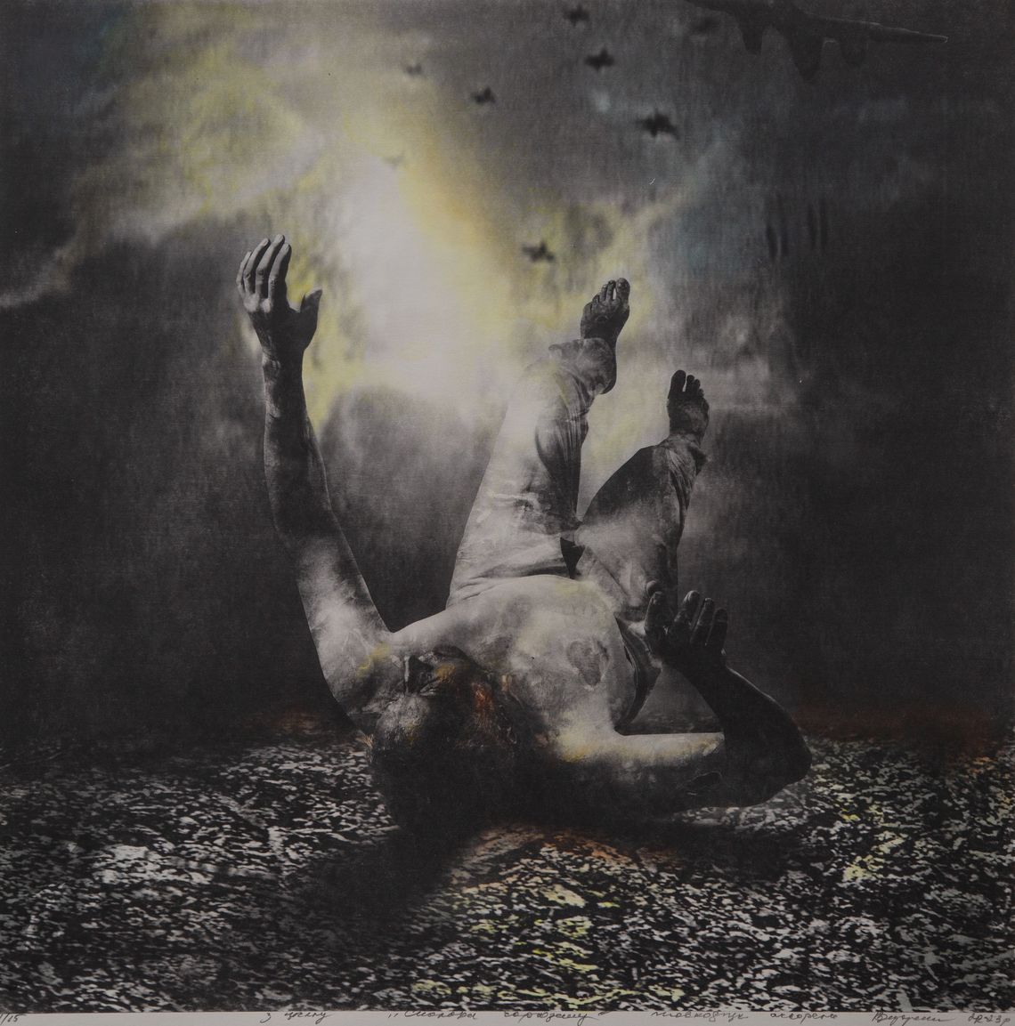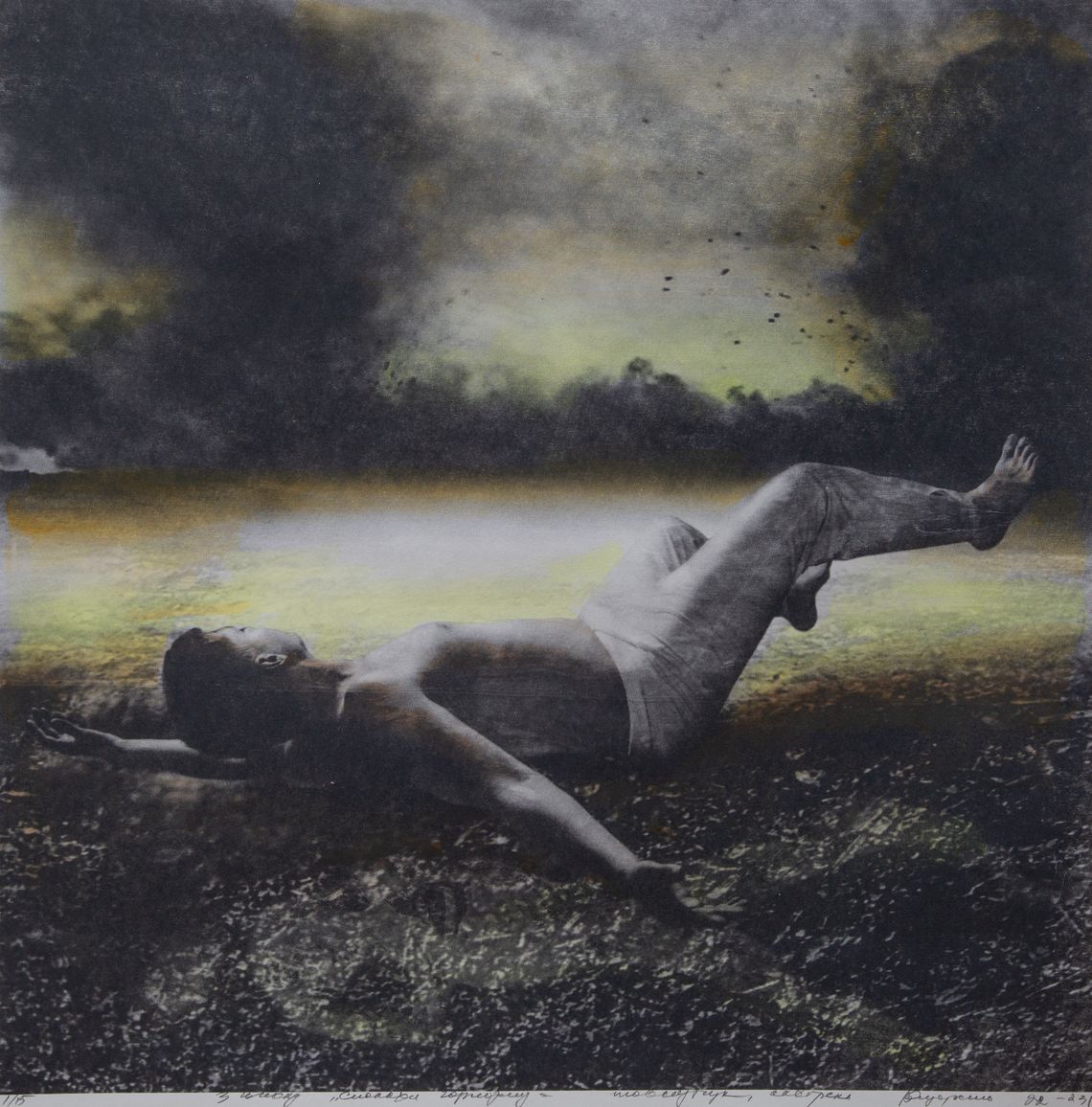 Коли 24 лютого 2022 року почалося повномасштабне вторгнення, важко було через блок-пости навіть дістатися до майстерні, і я працював удома. Чомусь пригадалися роботи художників того покоління, яке пережило Другу світову війну. Ці роботи можна було часто бачити на виставках. Якось само собою сталося, що я почав стилістично наближатися до робіт тих художників. Мені потім закидали, що ця стилістика нагадує 1960–1970-ті, коли художник вдавався до воєнної теми. Серія була задумана як цикл тиражної графіки, але виконаної в більш «демократичний» спосіб – не літографія чи офорт, а шовкодрук. У першу чергу зробив достатньо велику кількість таких графічних зображень. Процес відбувався в часи, коли люди вимушено залишали країну, панувала суцільна розгубленість, ніби утверджувалося відчуття дезорієнтації – питання «що робити?», «куди рухатися?», «як бути далі?» ставали для багатьох людей головними. Ми всі пам’ятаємо цей період – відсутність упевненості, гармонії всередині себе, внутрішній світ наче обвалюється, людина вимушена діяти не із власної волі. Коли вся серія була готова, я зрозумів, щоб ідея виглядала б більш переконливою, для цілісності майбутнього проєкту бракувало відчуття руху. Тоді вирішив повернутися до відео, яким починав займатися ще на проєктах «Аутентифікація», «Жорна часу». Це був організаційно складний процес: треба залучити акторів, оператора, зробити монтаж і звуковий супровід. Поряд з цим мені здалося важливим деяку частину графічних робіт відтворити у живопису.